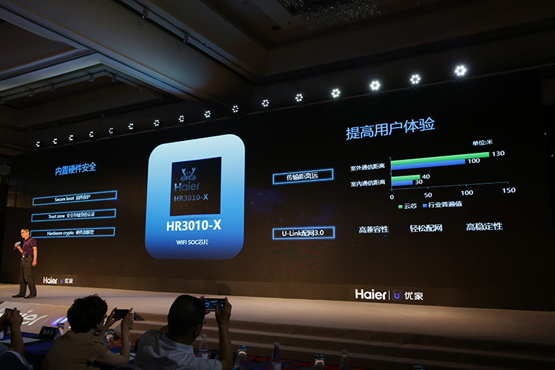 会上,海尔家电产业集团CTO赵峰对U+云芯做了详细解读。他介绍到,无论是PC互联网还是移动互联网,行业解决方案都包含硬件、软件平台及生态三个层面,所以,软件与硬件创新升级是行业转型与引爆的关键,因此物联网时代的智慧家庭行业需要的也是软硬一体的安全、开放、量身定制的解决方案。此次发布的海尔U+智慧家庭IoT物联云解决方案包含了“U+物联云1x3”和“智慧家庭IoT芯片”,“U+物联云1x3“作为系统软件层,以UHomeOS为核心,集U+云联、U+云算、U+云智三大板块;海尔智慧家庭IoT芯片作为芯片硬件层,涵盖物联解决方案和智能解决方案两种方案;再加上海尔U+云芯以开放的姿态,搭建开发者社群,为企业级用户提供内容、技术、资金等生态资源服务,海尔云芯通过软硬一体化的解决方案,聚力芯片硬件层、系统软件层及生态服务层,整合各方资源,助力传统企业快速完成市场接入,实现制造升级。U+云芯通过五重物联防护、接入周期短、产品开发快以及可量身定制的优势,引领行业发展,共同构建物联网智慧家庭行业大生态。
