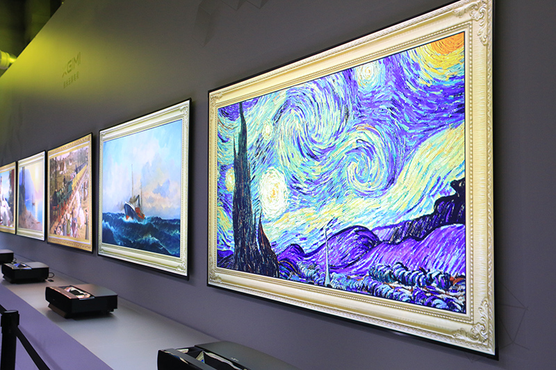 作为高品质家庭影音设备,T1不仅是智能的,更是引领新生活方式的载体。配备了T1抗光幕布的家居环境无需再进行电视墙装饰,当用户不看电视时,T1能化身高清彩色壁画,令客厅充满艺术气息;也能变幻成一幅美妙风景,用户足不出户却仿佛登顶喜马拉雅。T1还将推出照片墙,待系统升级过后,用户只需要用手机扫描二维码,将照片上传到电视上,T1便会生成带有相框的照片墙,让客厅电视墙温馨起来。