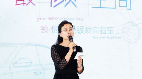 一汽-大众奥迪销售事业部北部区服务总监赵悦女士在奥迪“最‘颜’空间——领悦绿色钣喷实验室” 北京站启动仪式上致辞 2016年10月22日,主题为“最‘颜...